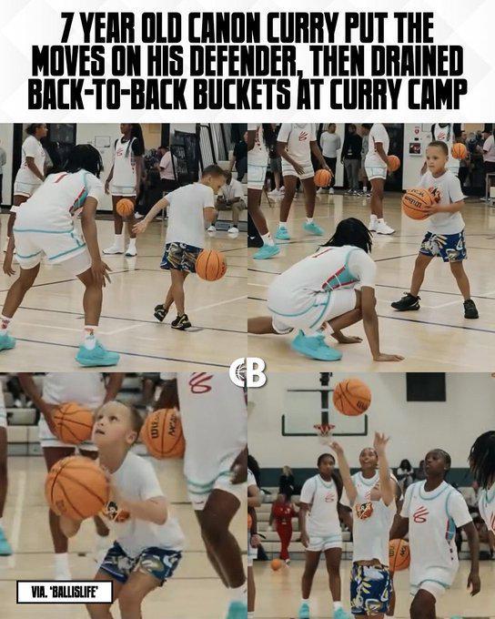 虎父无犬子!库里7岁的儿子卡农在训练营中晃飞防守人连中两记投篮