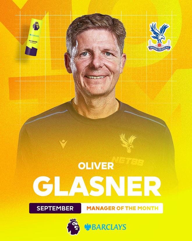 雷速体育10月10日讯 官方消息,水晶宫主帅格拉斯纳当选英超9月最佳教练,为生涯首次。