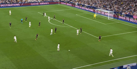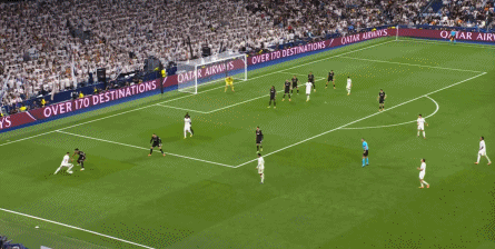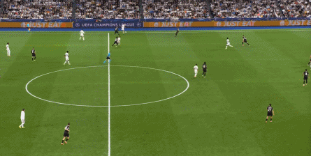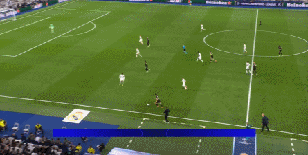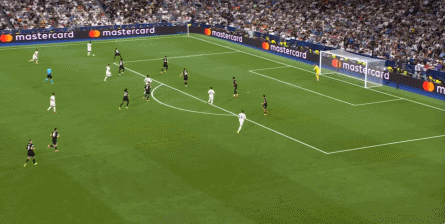 所以从上半场前半段的表现来说,这场比赛很有可能会进入到皇马围攻,尤文反击的基调当中,尤其是结合第23分钟这次皇马难得进入两线之间的好机会却没有打好: