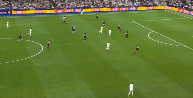 本场比赛,皇马继续自己的433思路,只不过在贝林厄姆复出,占据了一个中场名额之后,球队的平衡开始发生了变化。