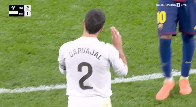 第99分钟,巴萨中场佩德里在一次突破过程中因对楚阿梅尼犯规领到了第二张黄牌,被两黄变一红罚下场,皇马球员对这位巴萨中场表示了同情。